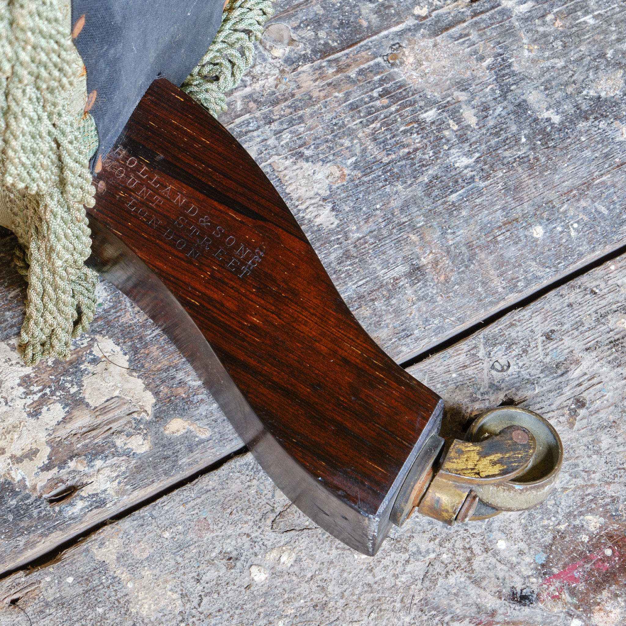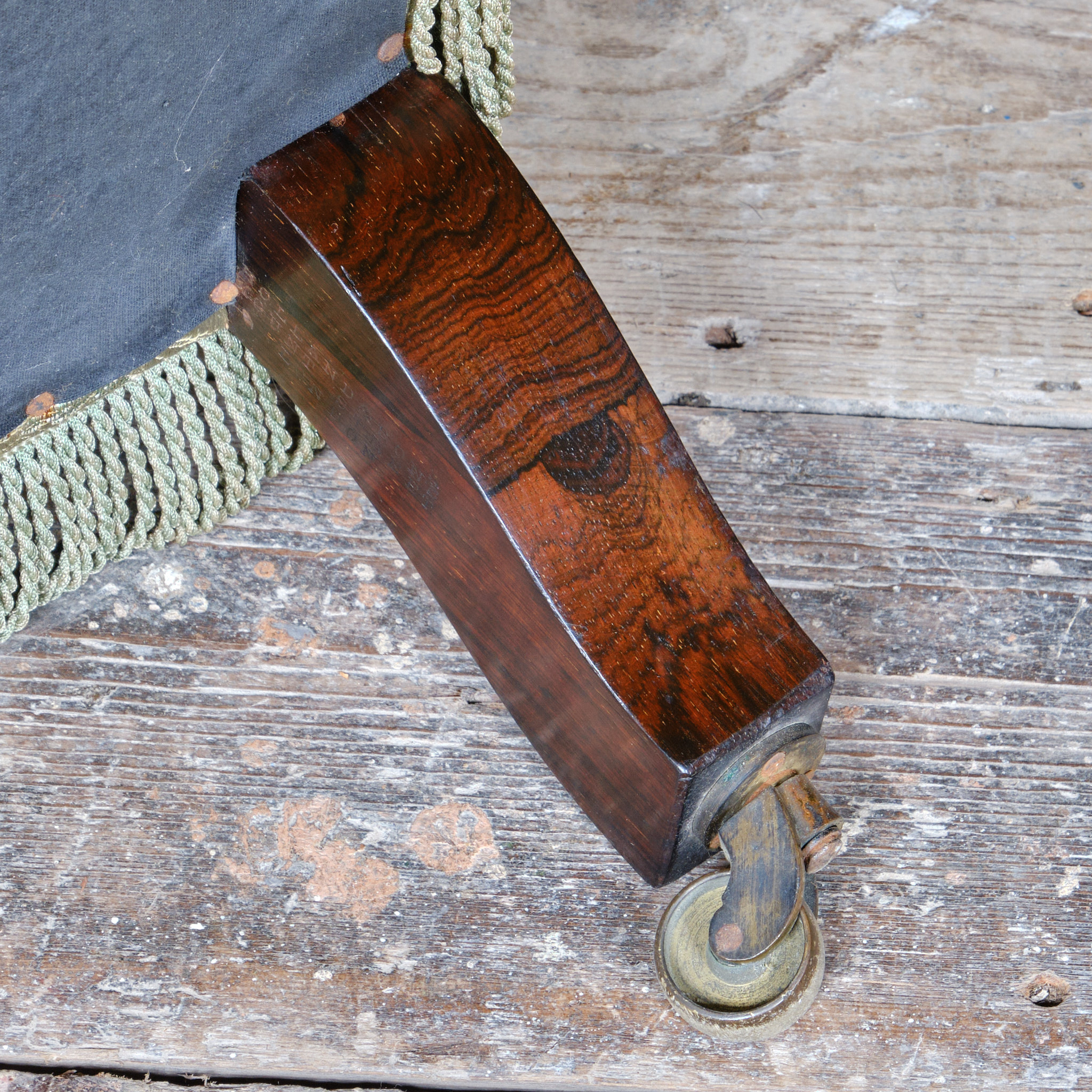 A well drawn 19th century armchair by Holland & Sons - London, English c1860. Raised on turned Rosewood front legs and splayed rear legs. The right rear leg bearing the the Holland maker mark and address. All the legs with nicely figured Rosewood grain and all retain the original Cope & Collinson brass casters.