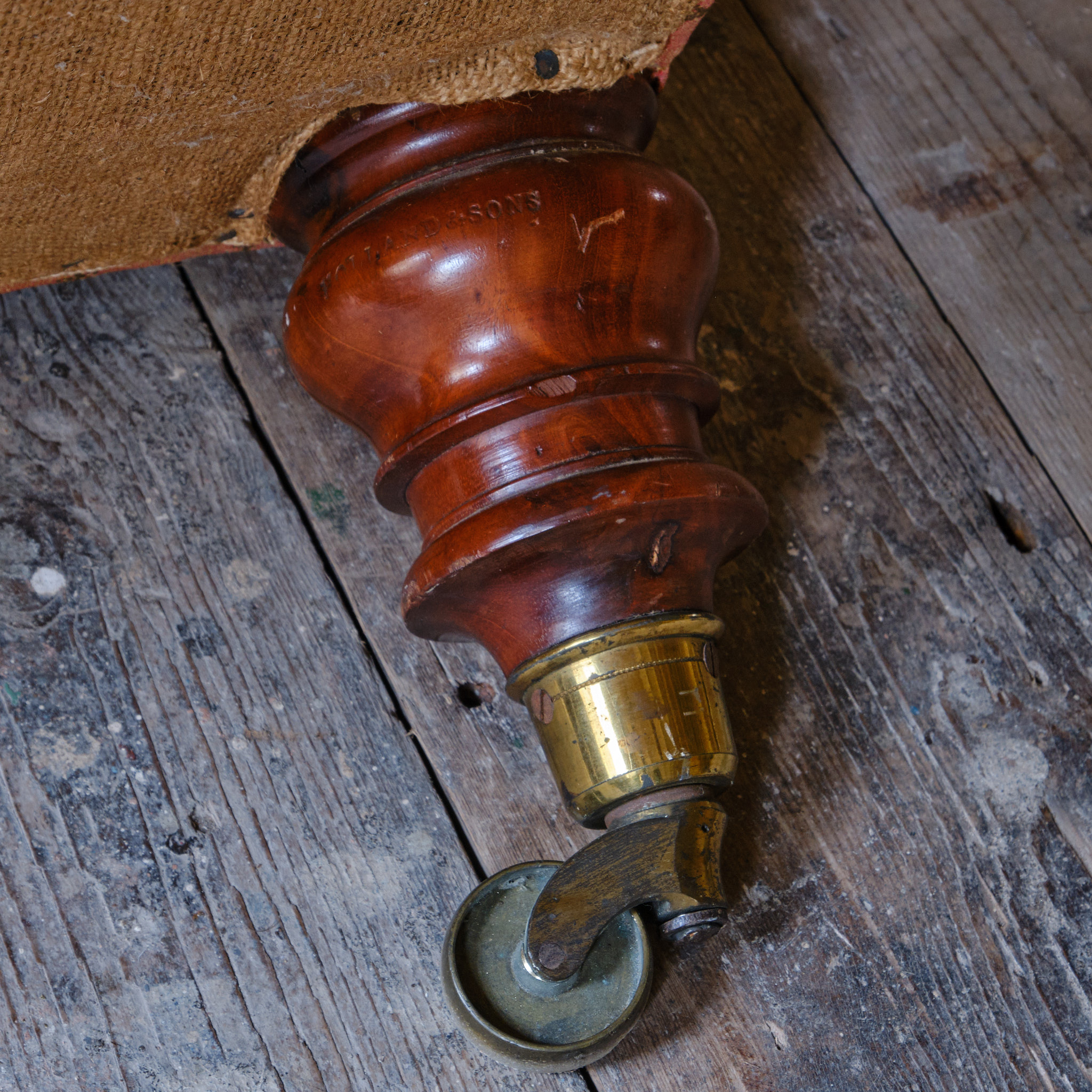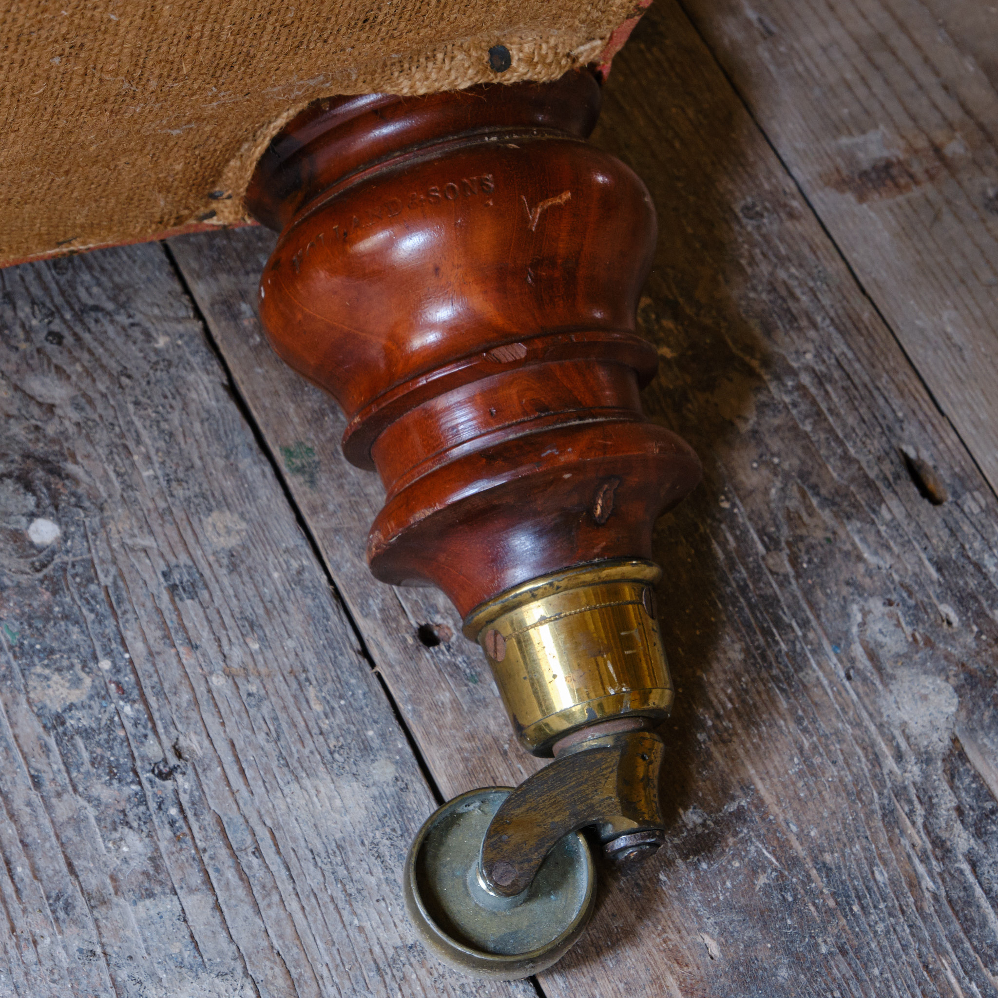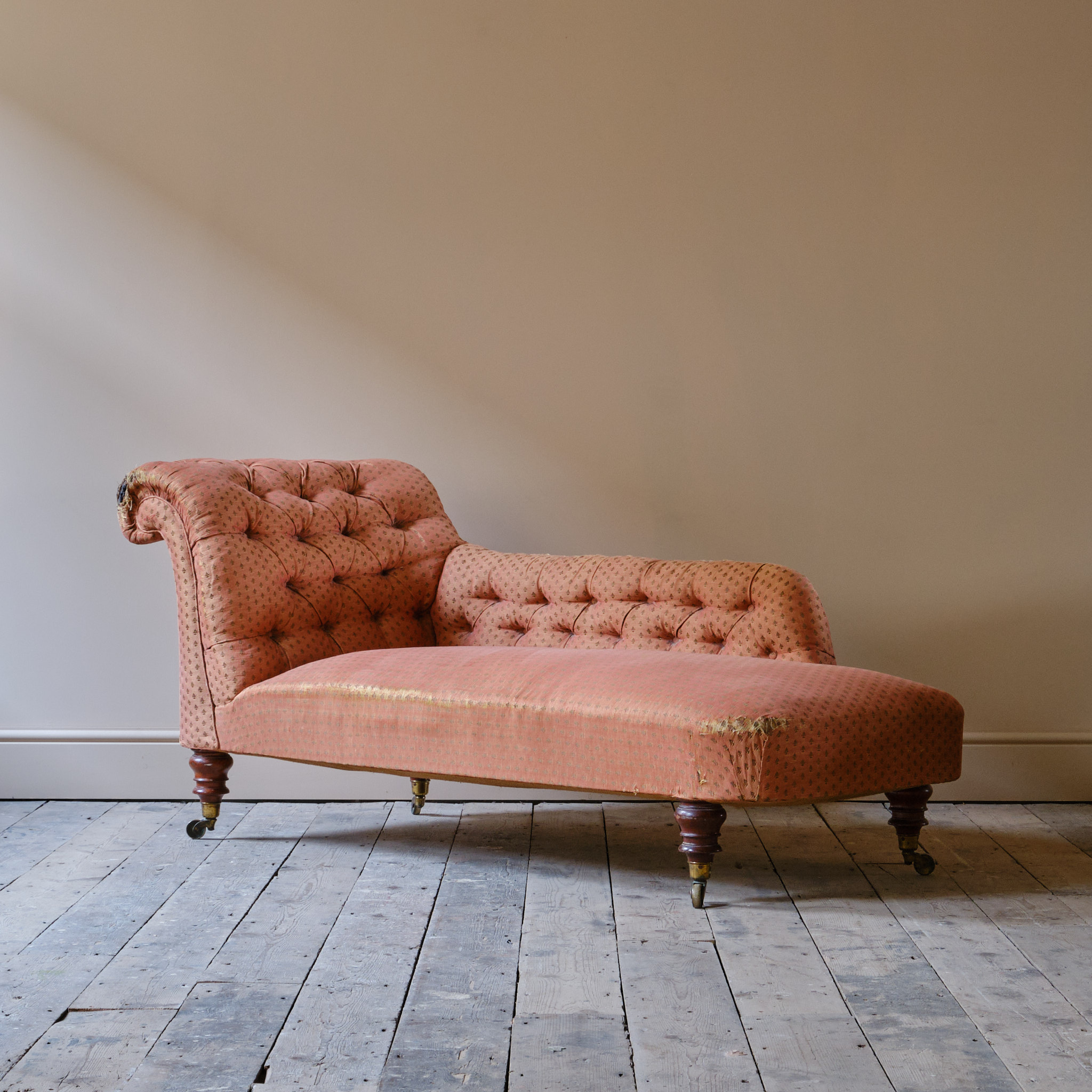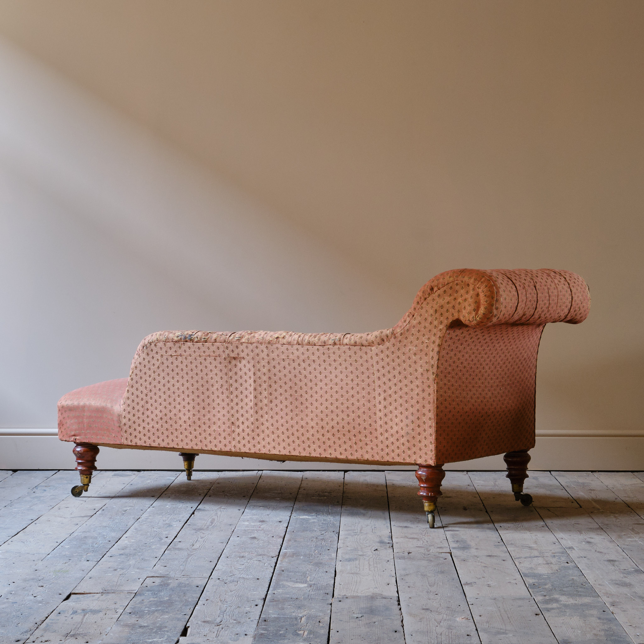 A superb mid 19th century English Chaise Longue by Holland & Sons - London c1840. Raised on 4 turned mahogany legs and the original Cope & Collinson gilt brass cup casters. One back bearing the Holland makers stamp.