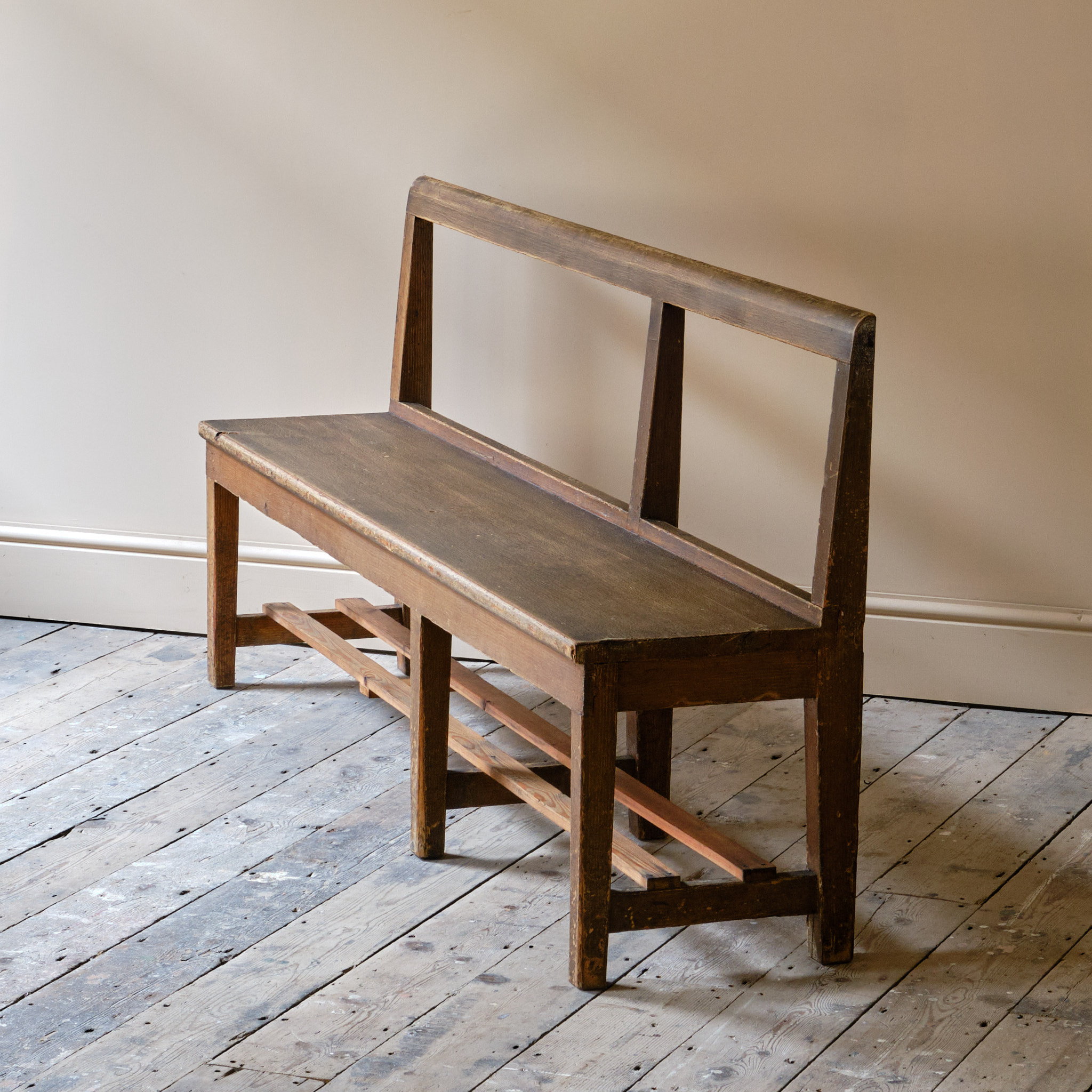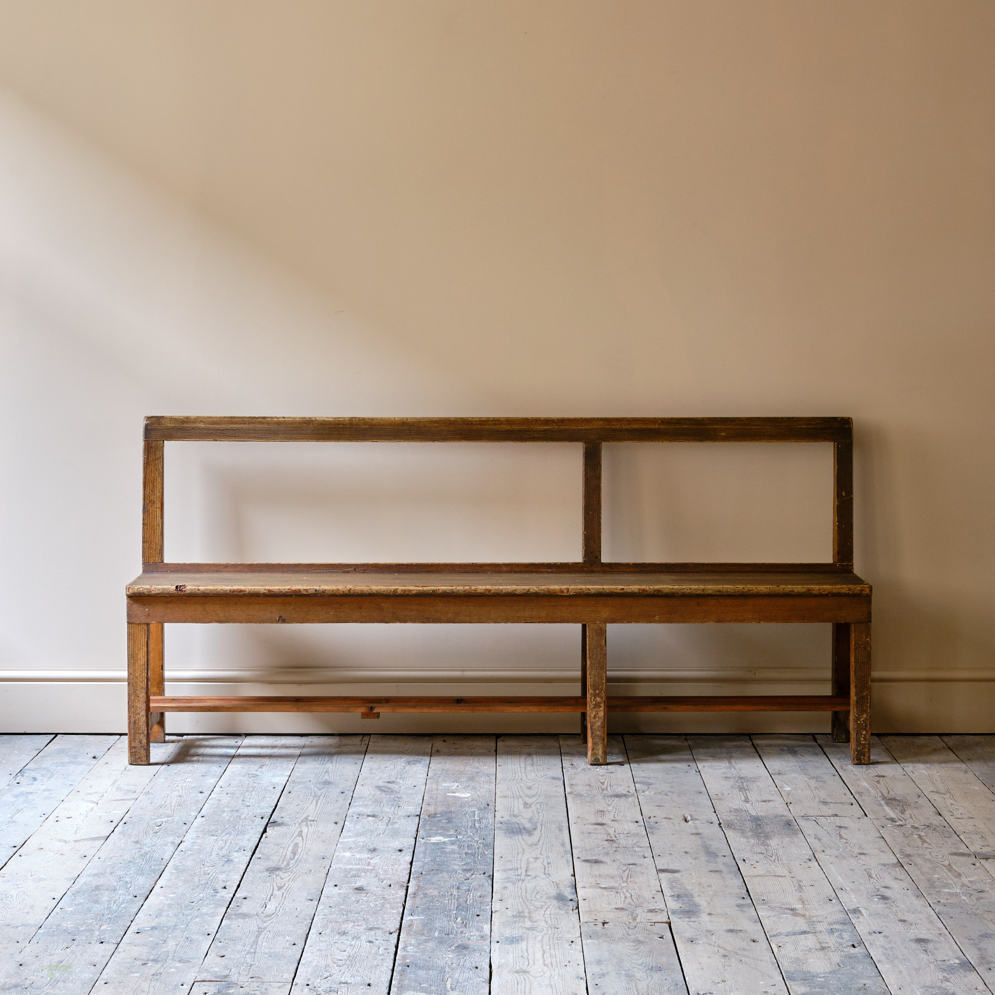A 19th century pine chapel bench in its original Faux oak grained painted finish.