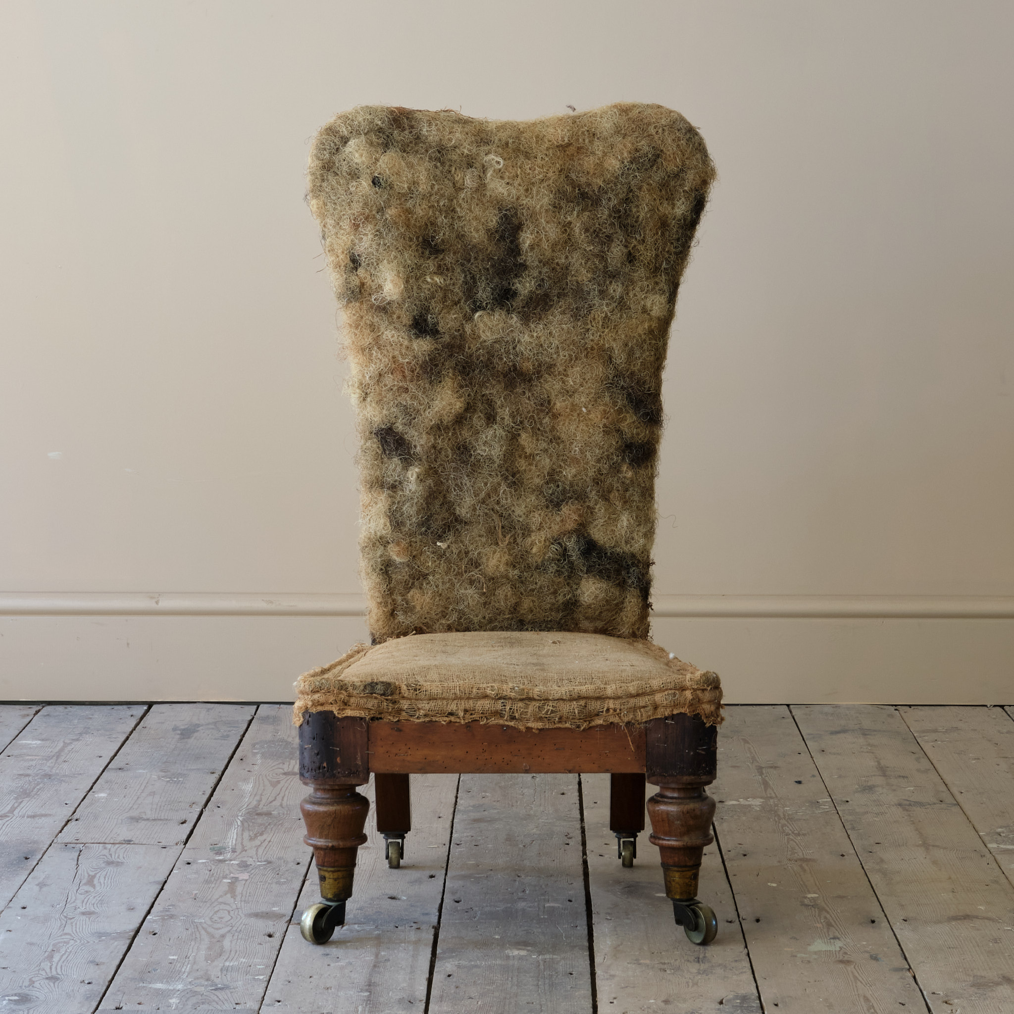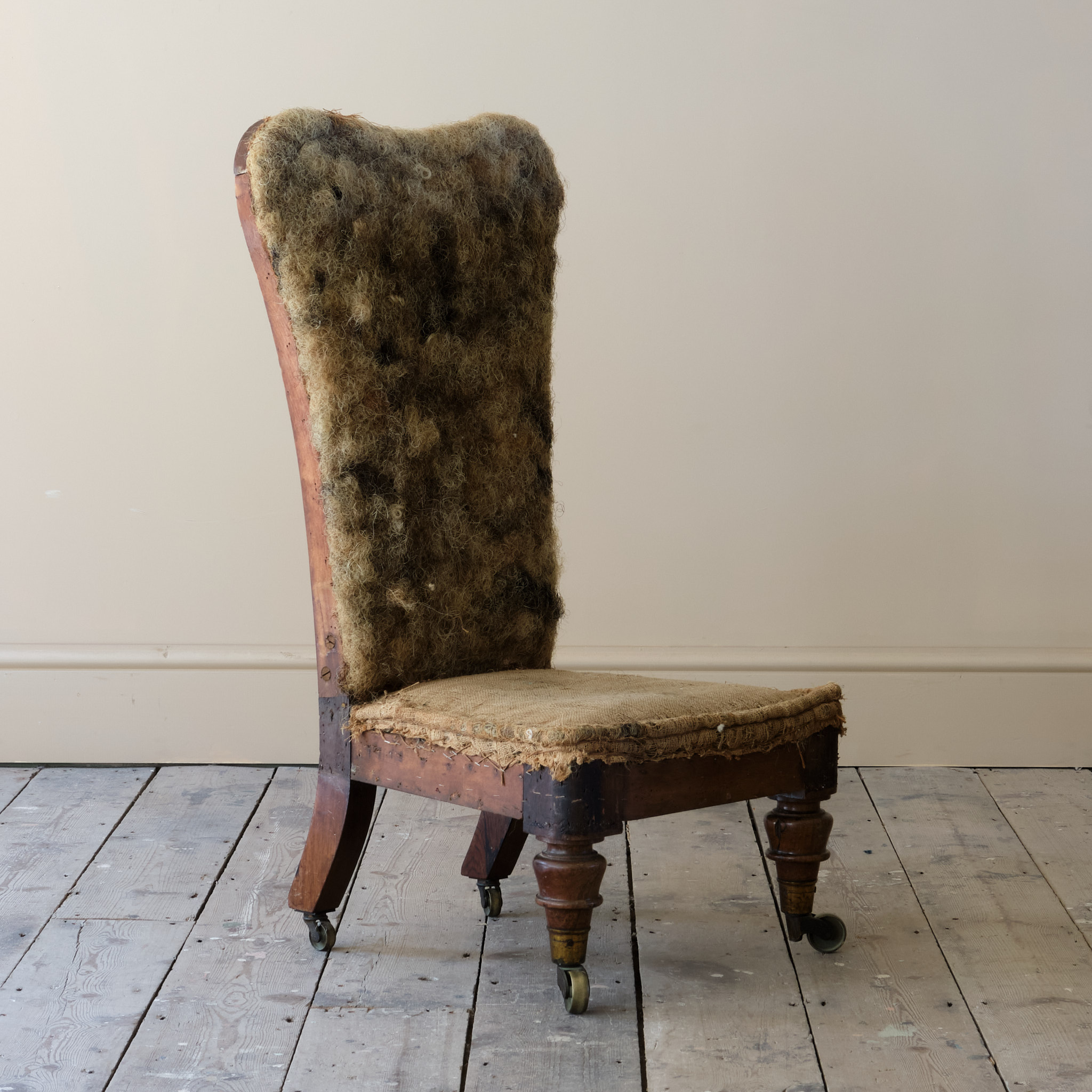 A well drawn mid 19th century side chair. Raised on Rosewood legs and the original brass casters. The chair retains its original horsehair fillings. English c1840
