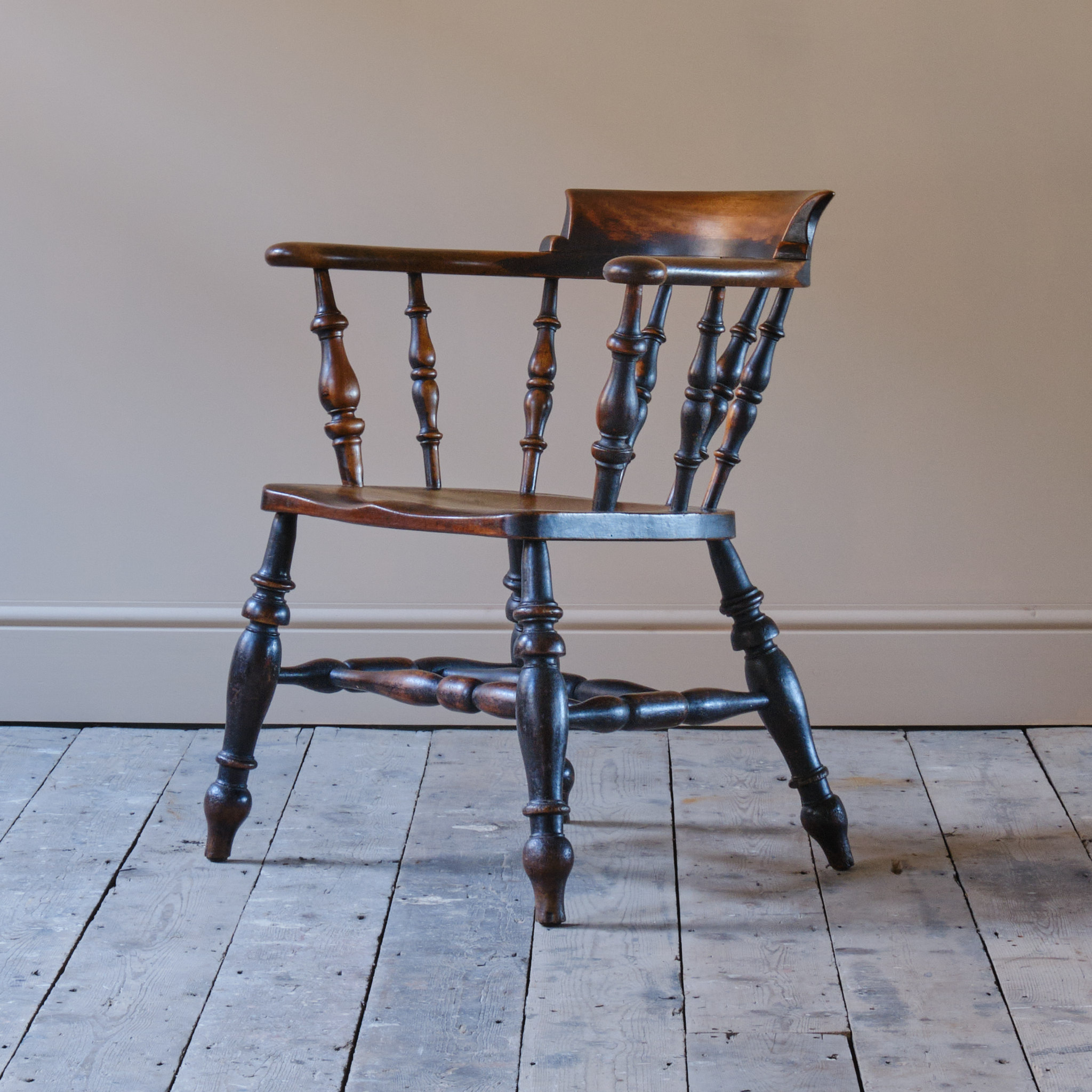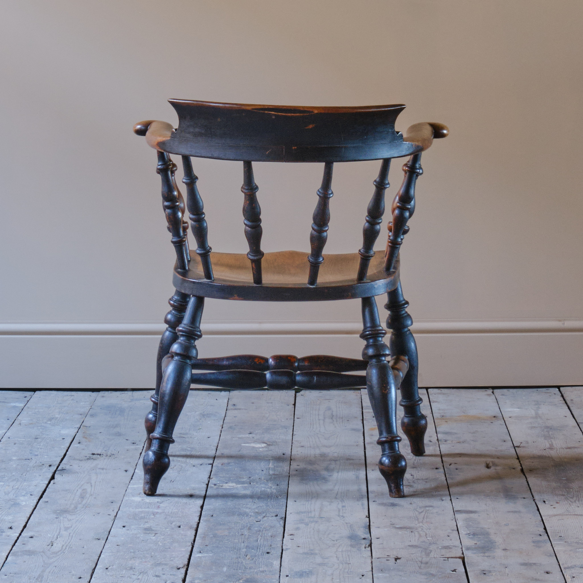 A 19th century ash and elm Windsor chair in its original crusty paint perfectly worn to reveal the timbers below. In very good original untouched condition. Bearing the makers stamp to the rear of the seat.