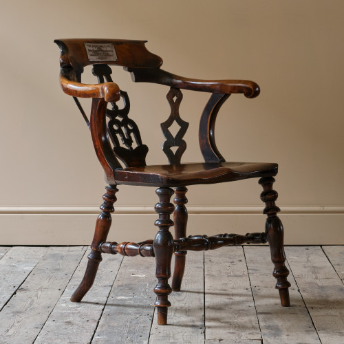 A proper English deep seated country house armchair from Dutton Manor - Lancashire. In its original tatty upholstery with old repairs throughout. Large scale and super comfortable. c1900