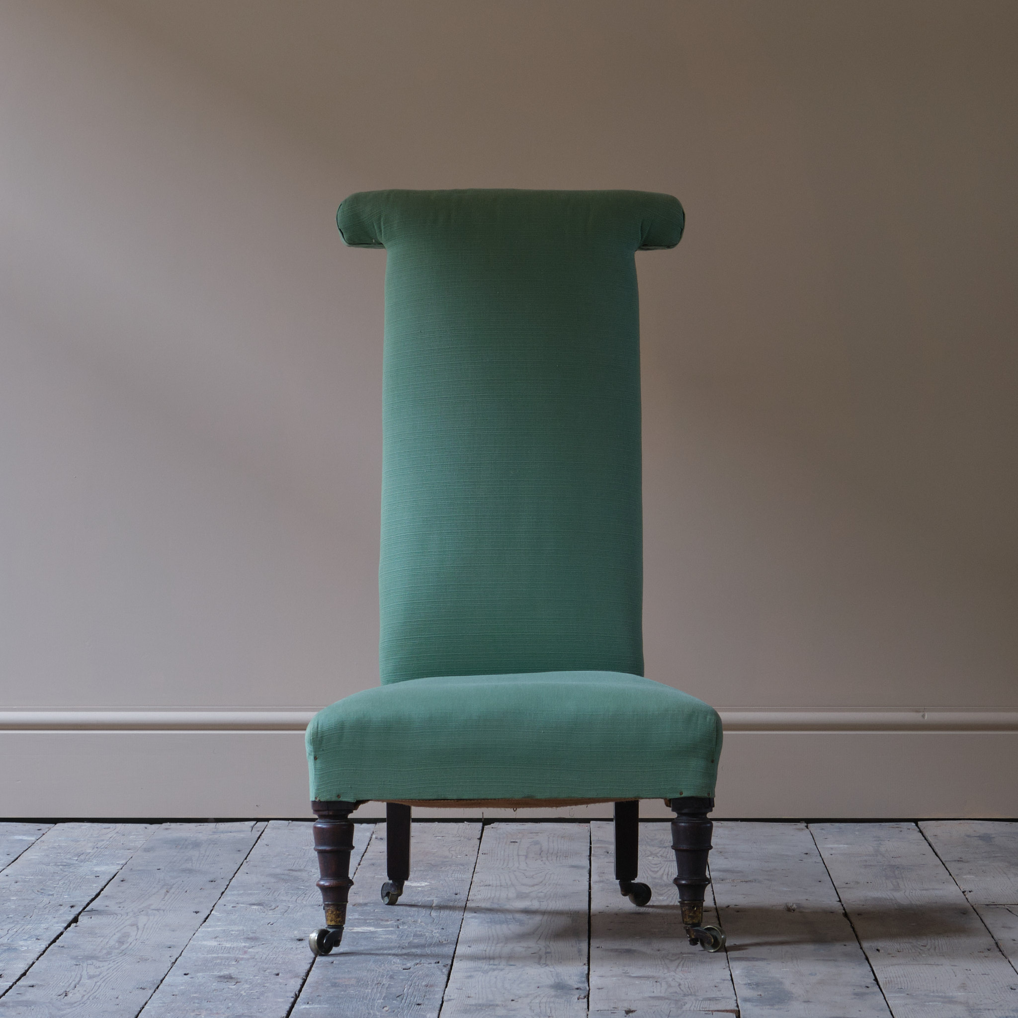 A good quality William IV prayer chair. Raised on turned front legs and splayed rear legs, all with the original brass casters. English c1835