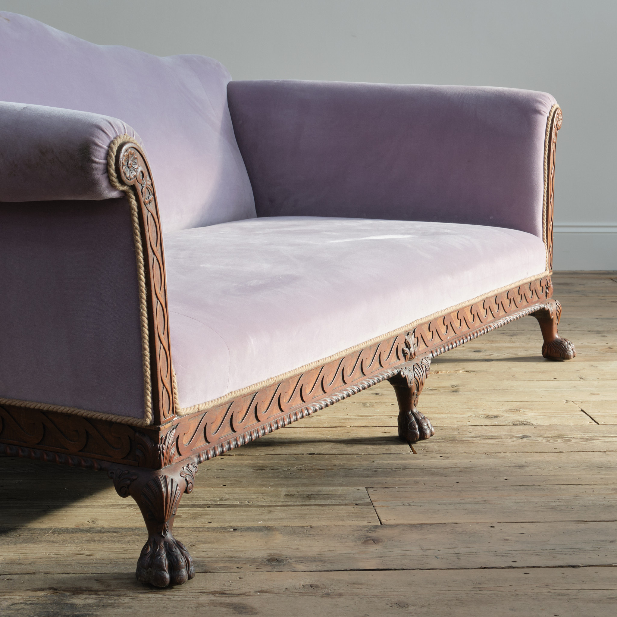 We can of course take the sofa back to its bare frame and have it professionally upholstered with traditional fillings and feather seat cushions.