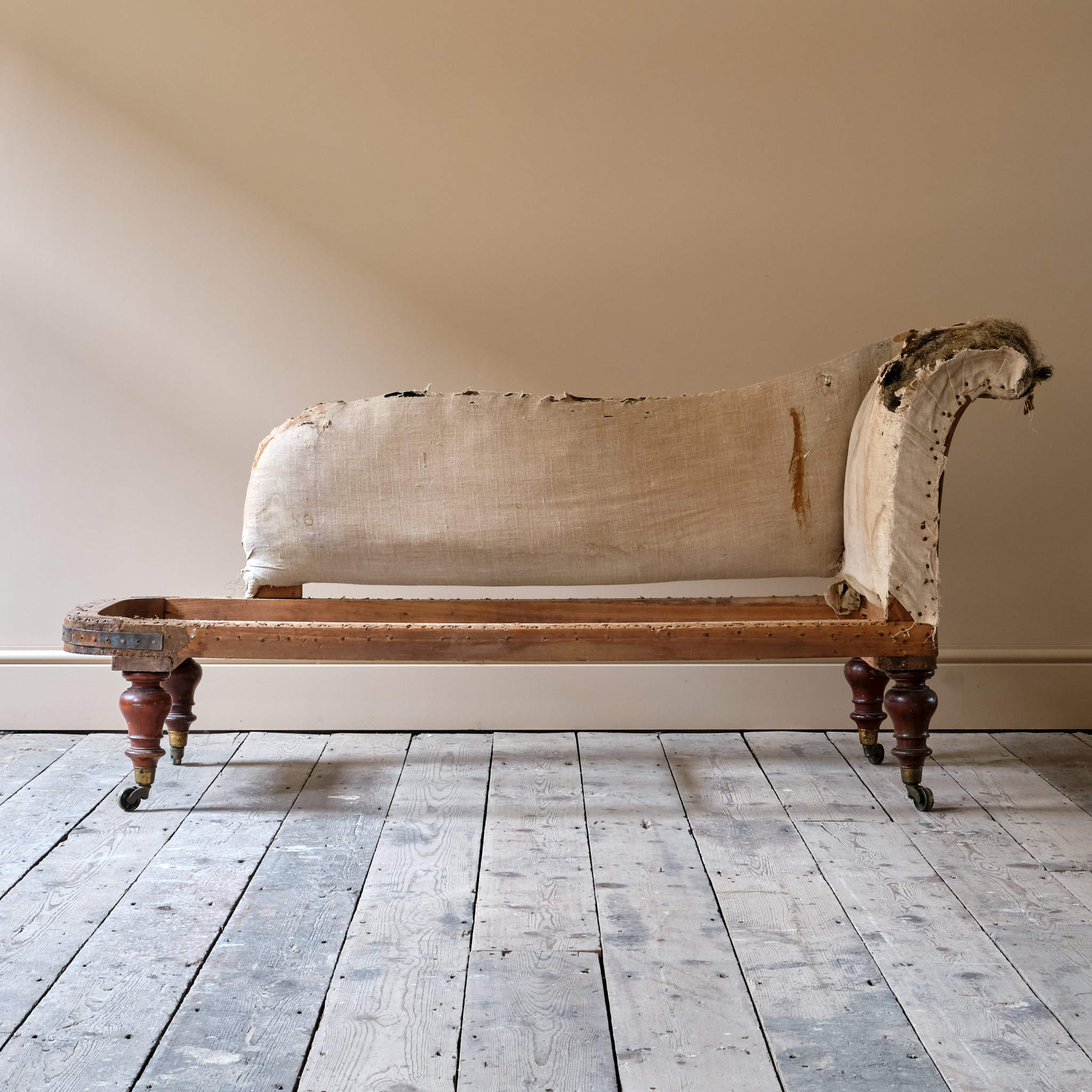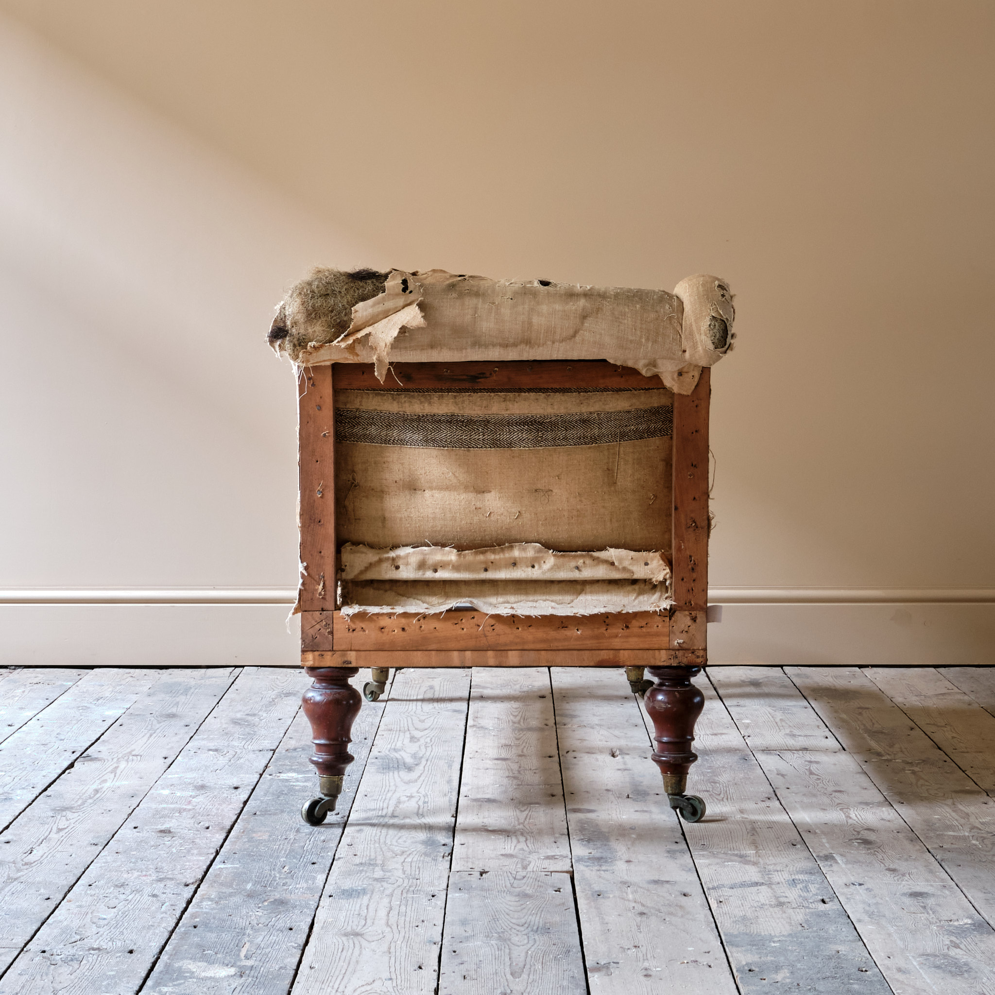 For Upholstery and requiring a new fixed seat or cushion. Retaining the original innards to the arm and back rest.