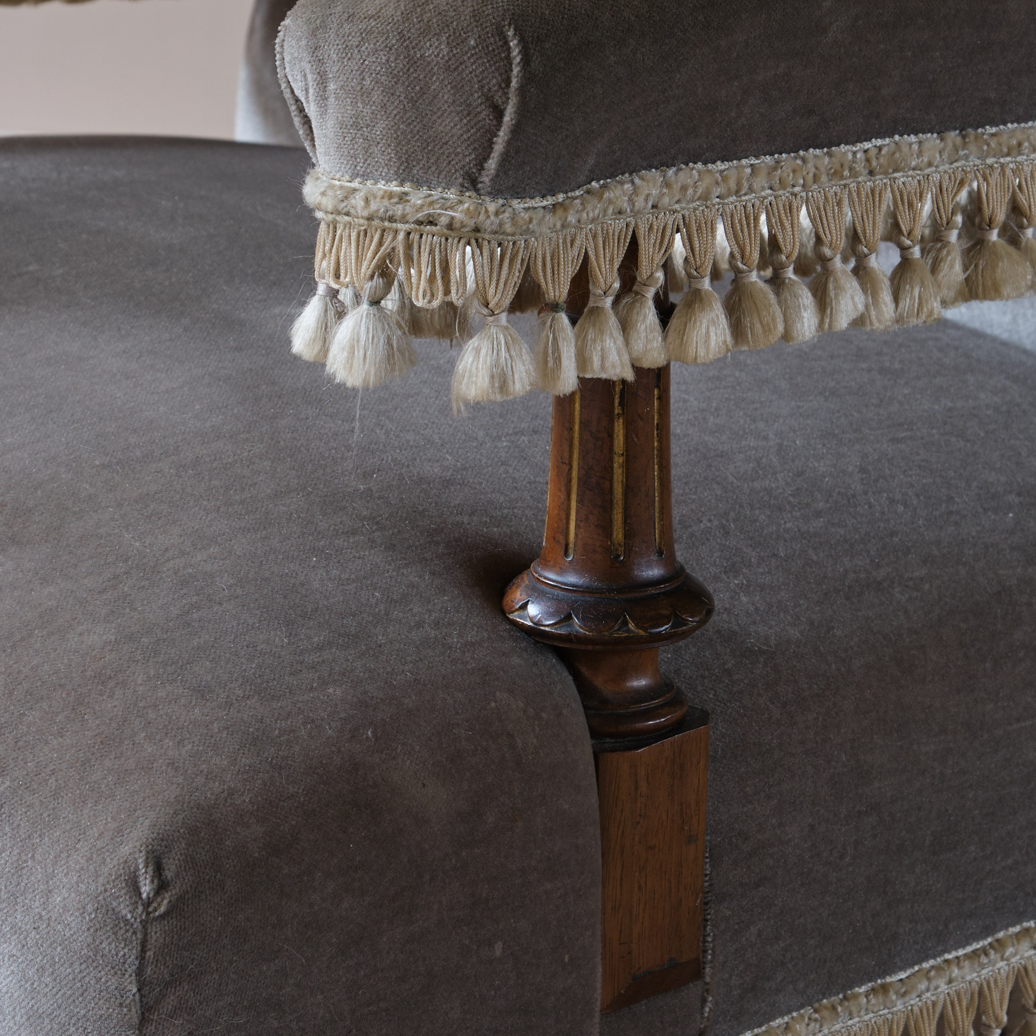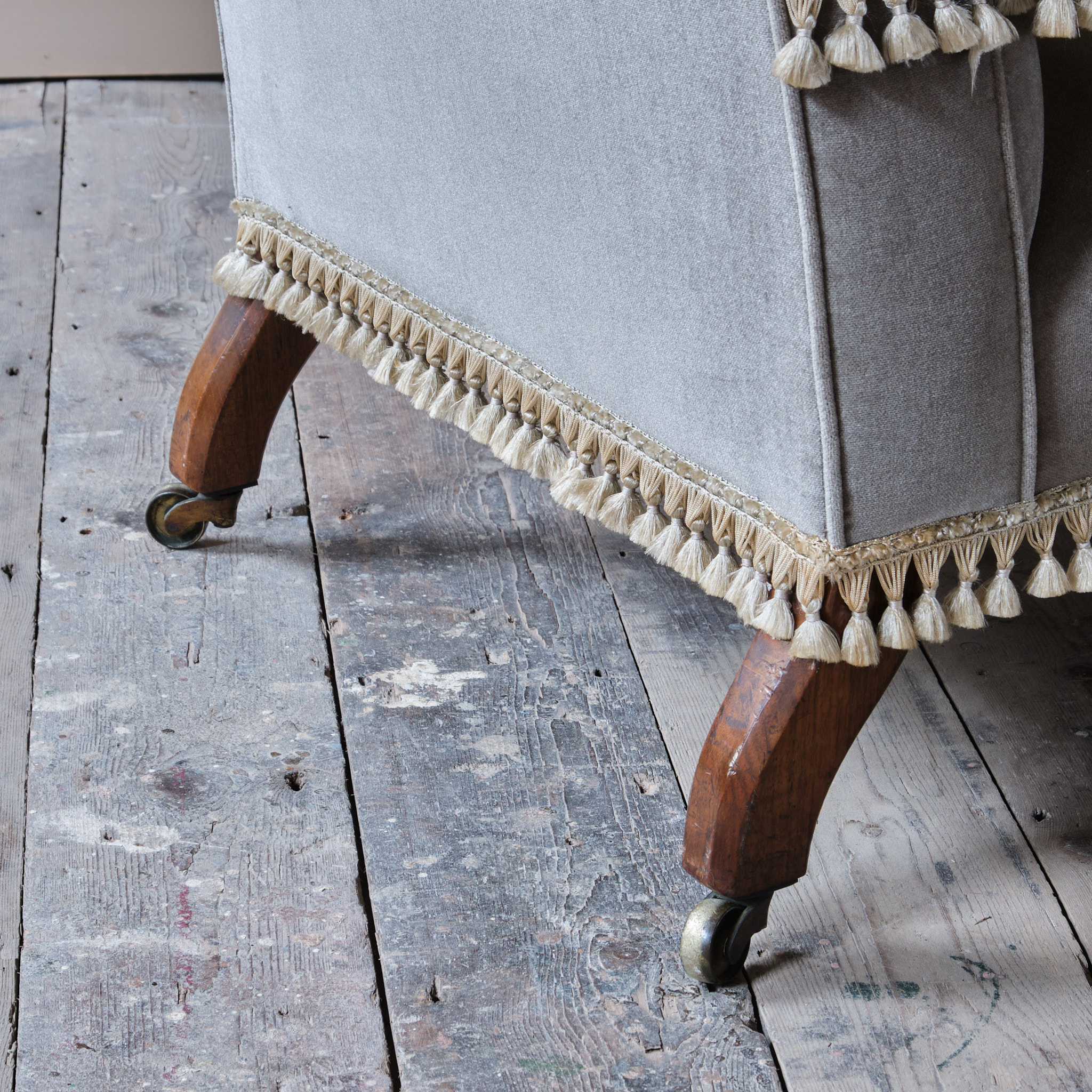 Structurally in good solid order and shown here in sage green draylon velvet. The fabric would benefit from being replaced, it is however usable as is.