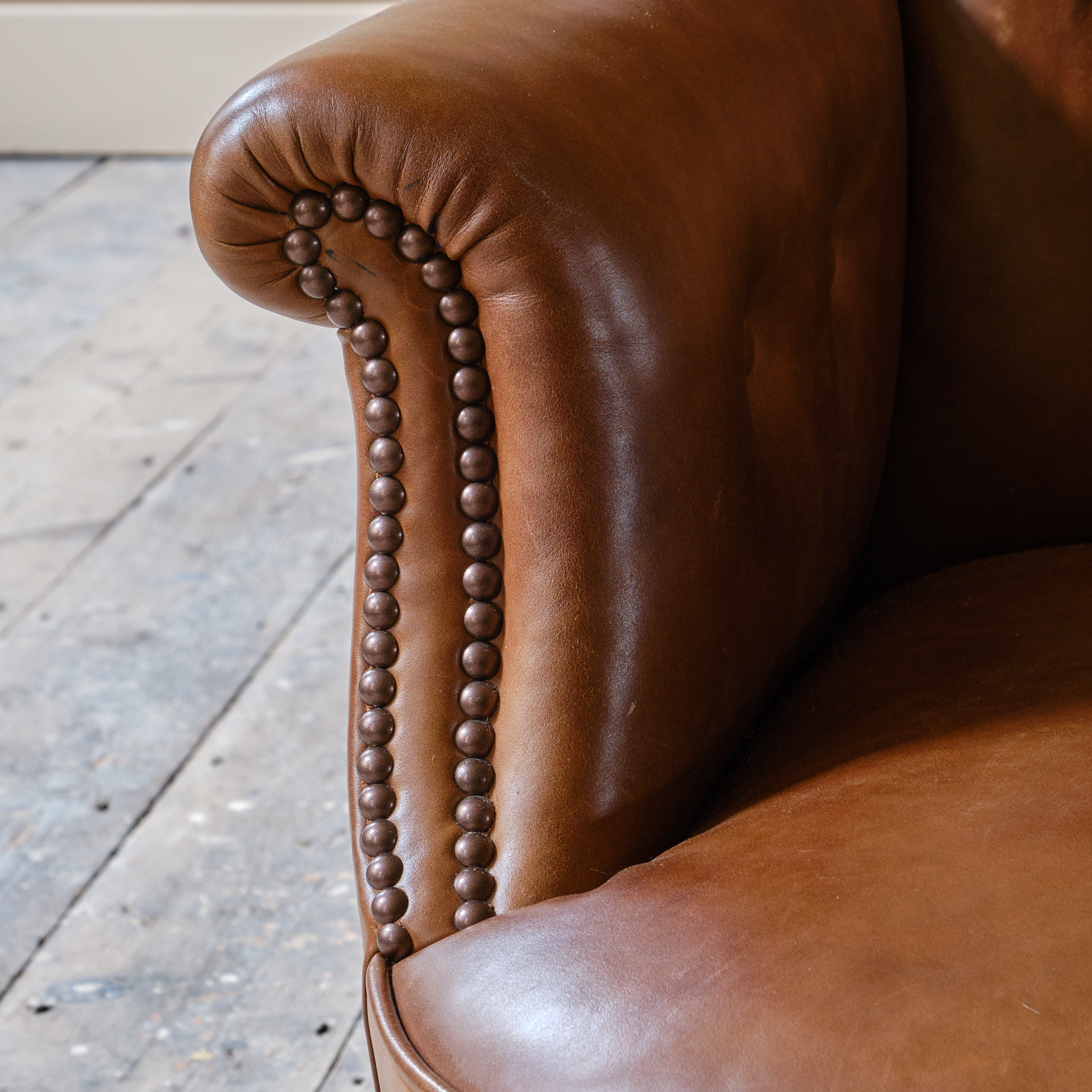 The chair has recently been recovered in a good quality hide leather with firm and intact traditional innards.