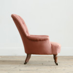 Structurally in good order with the innards intact and ready for a new top cover. The current plumb coloured fabric is presentable with the odd mark which may clean.