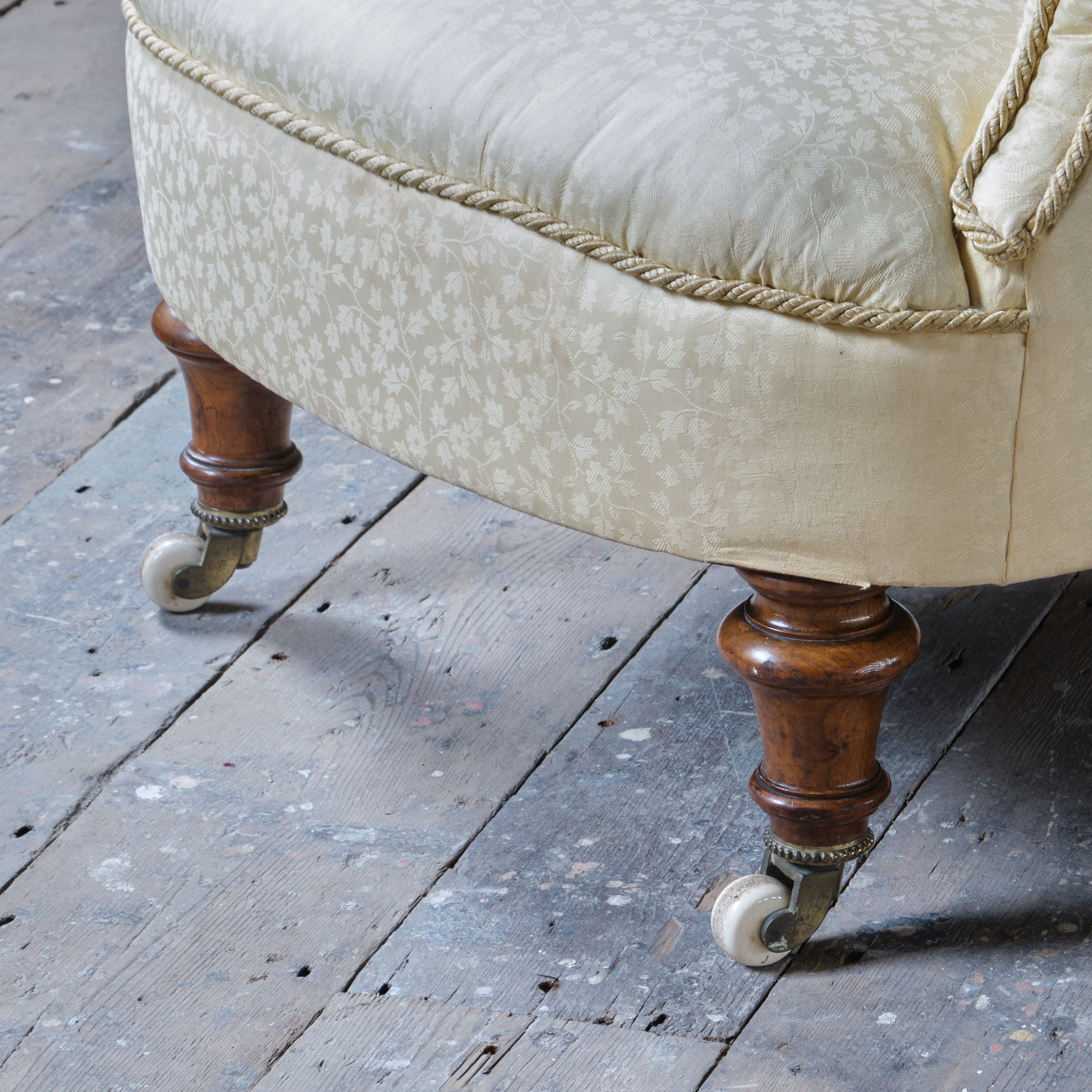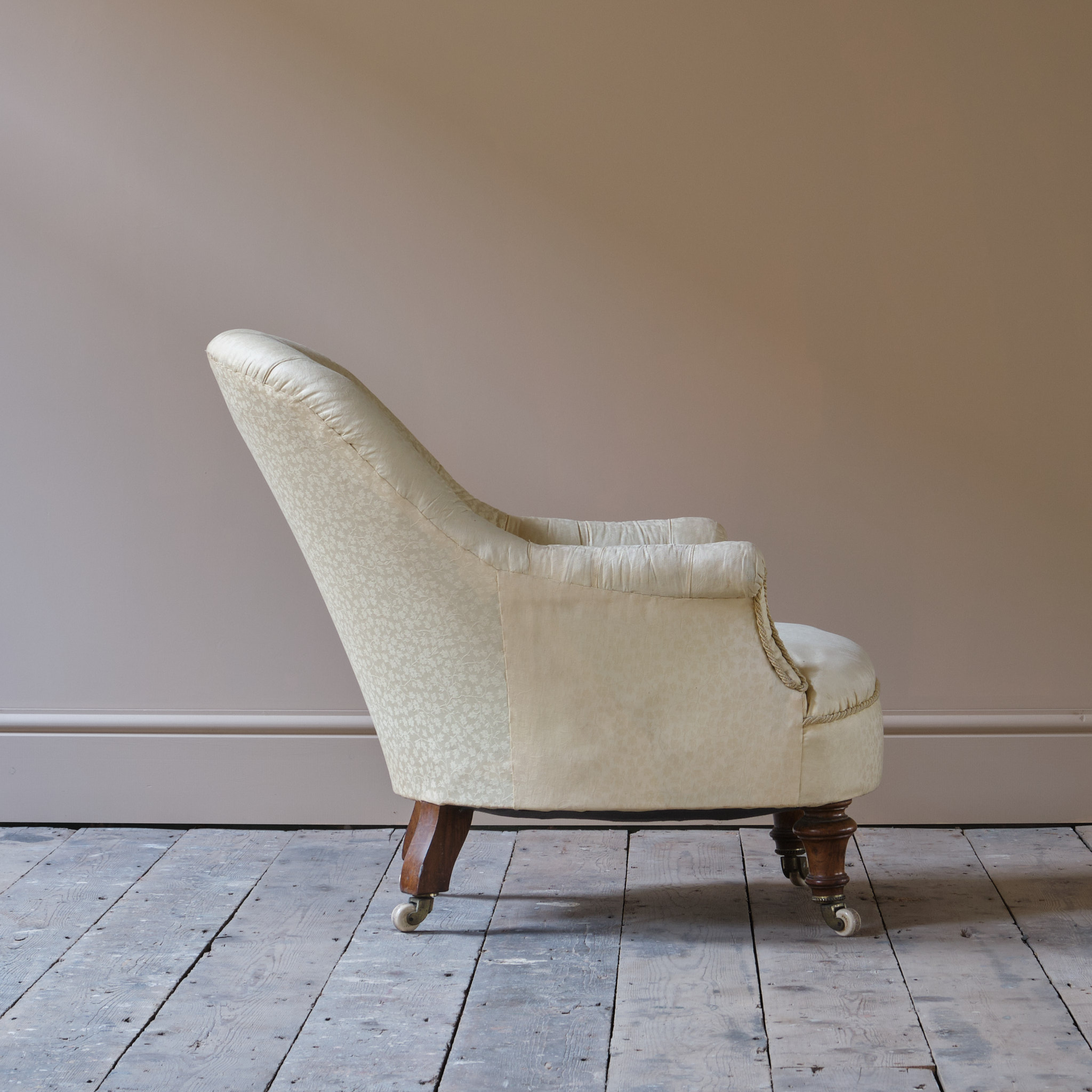 A good quality small 19th century armchair in the manner of Howard and sons. English c1870. Raised on walnut legs and the original casters.