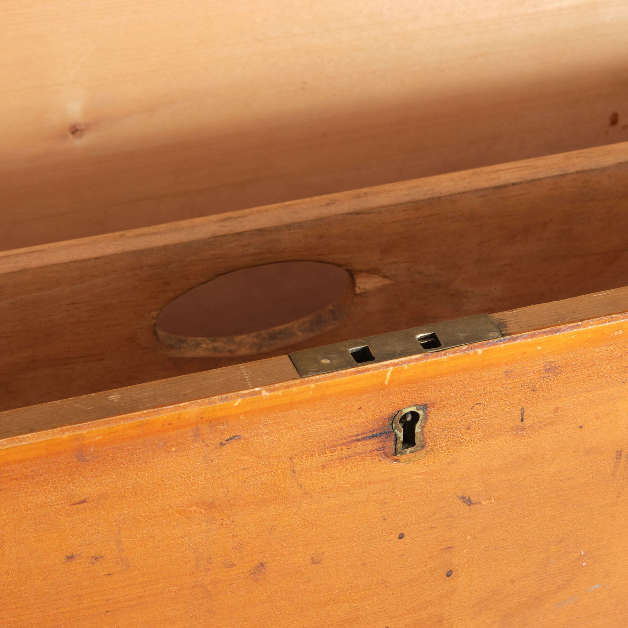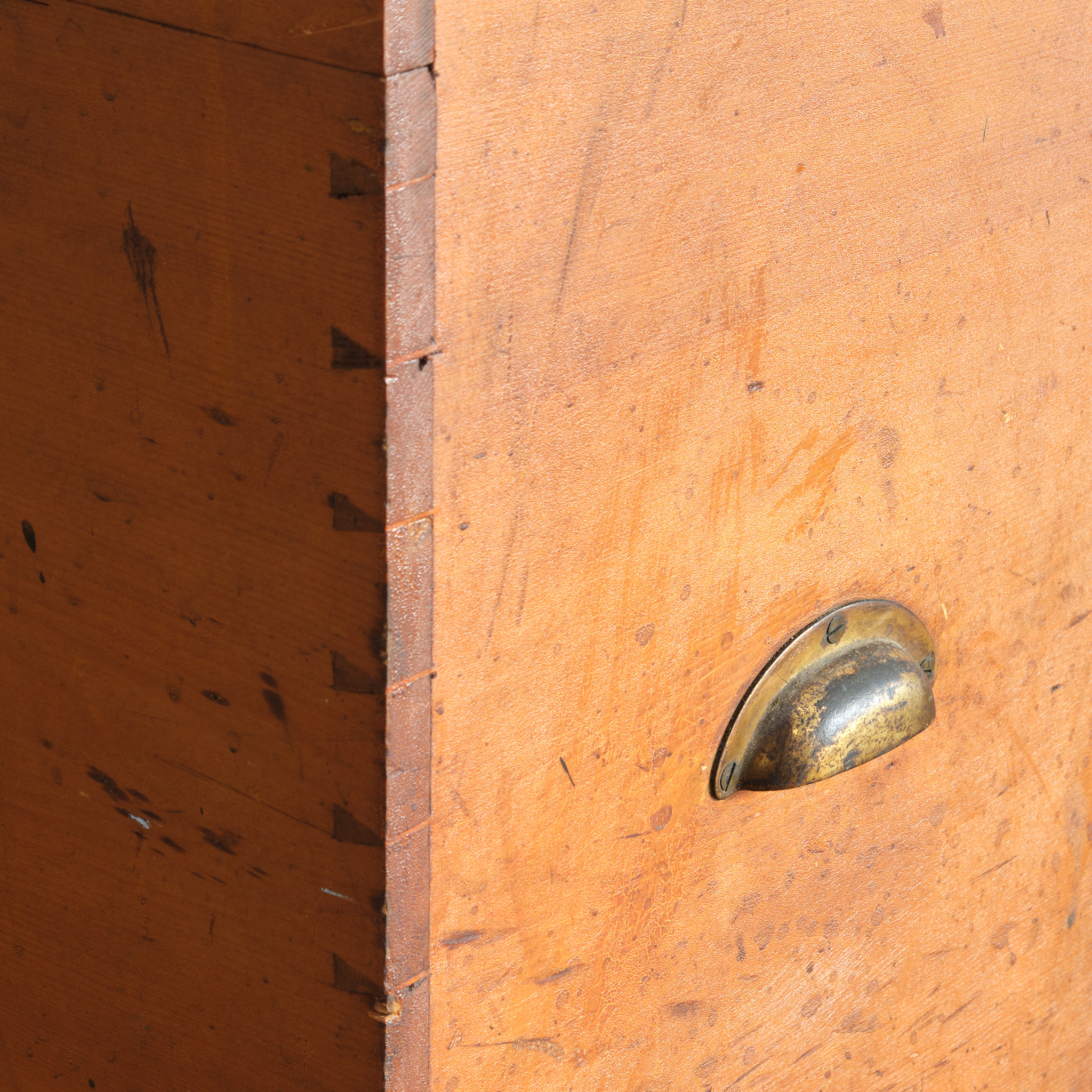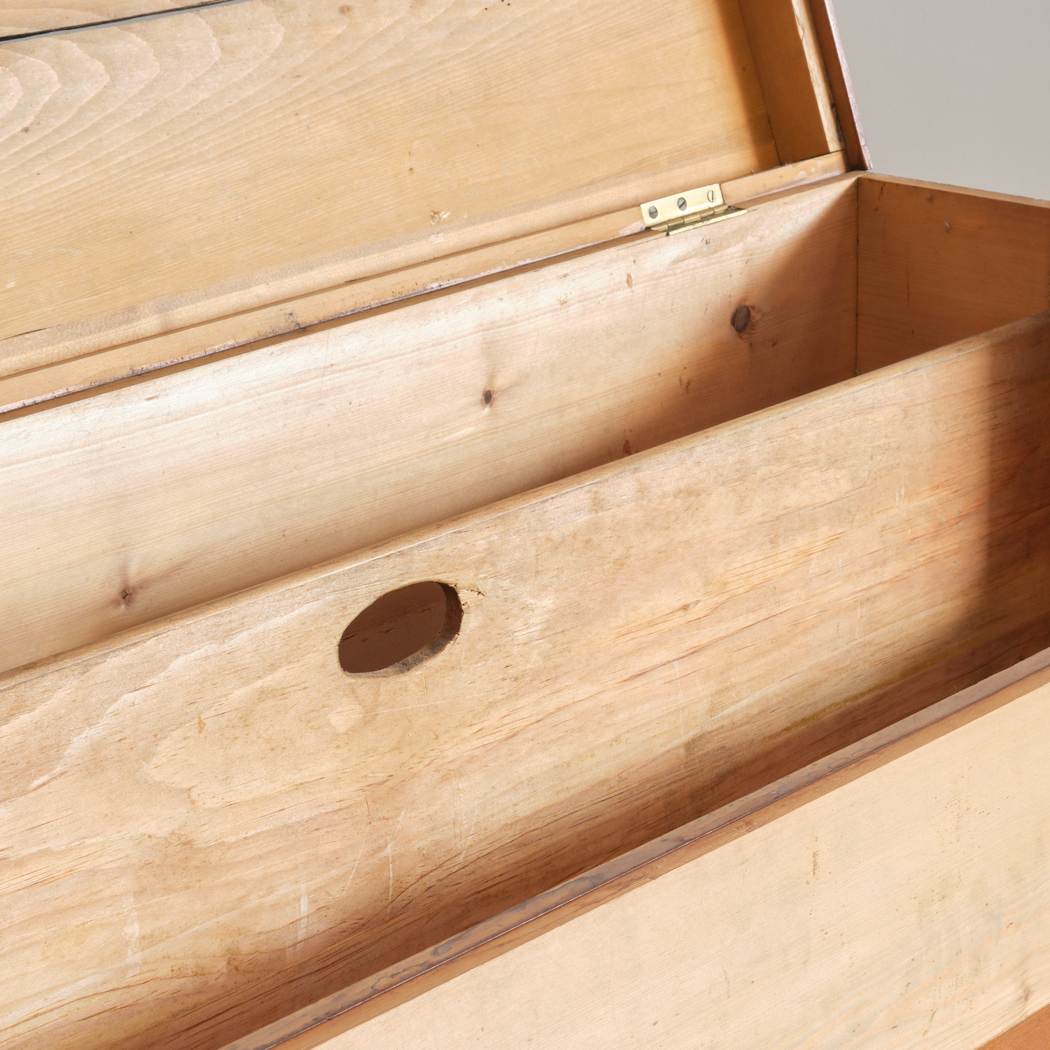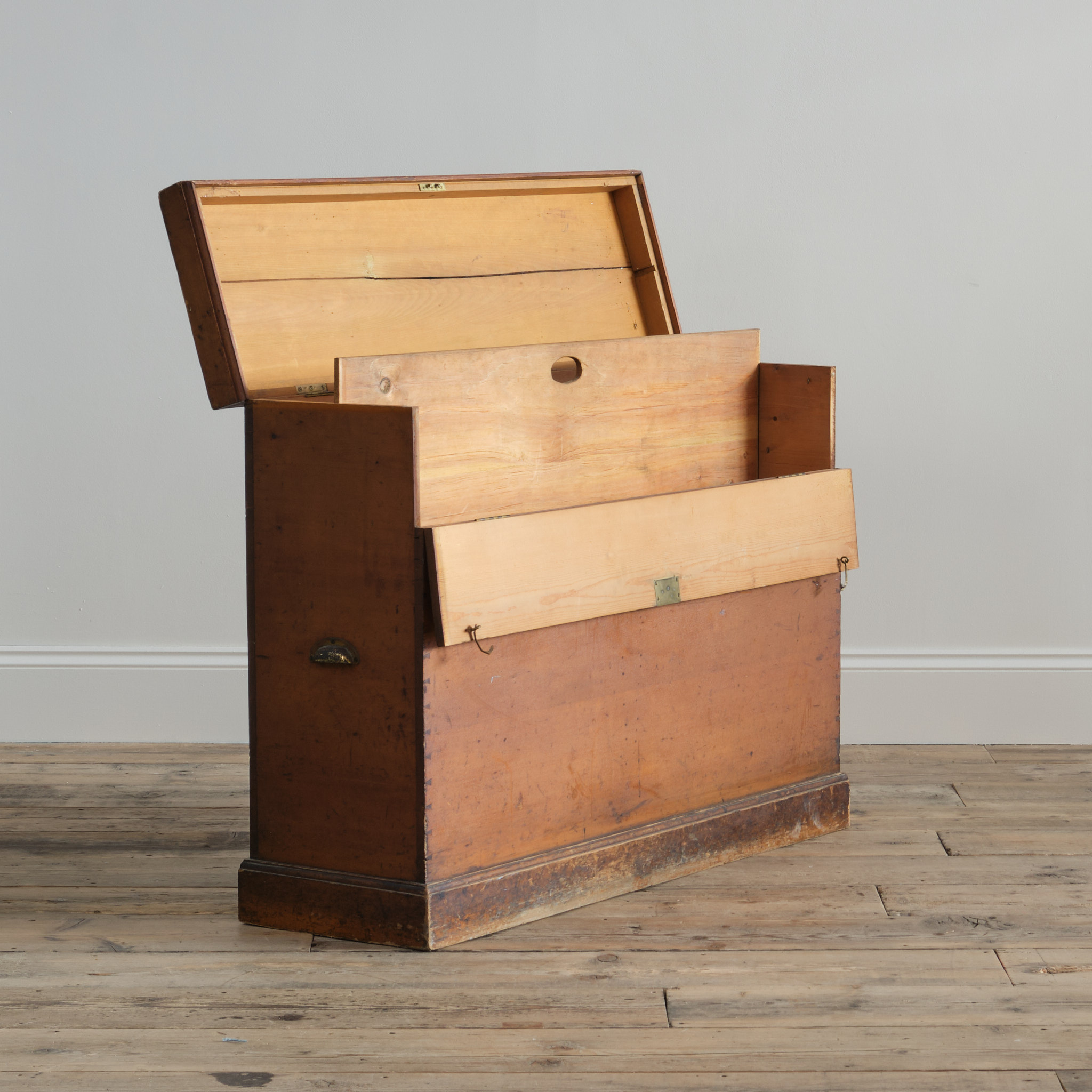 A 19th century pine plan box with a pull out divider, original brass carrying handles and attractive dovetailed construction with a good colour and patina throughout.