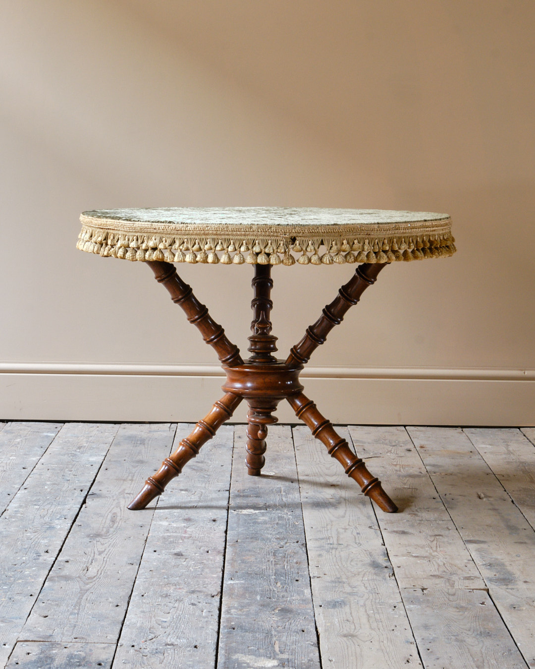 19th century simulated bamboo Gypsy side table in Antique velvet