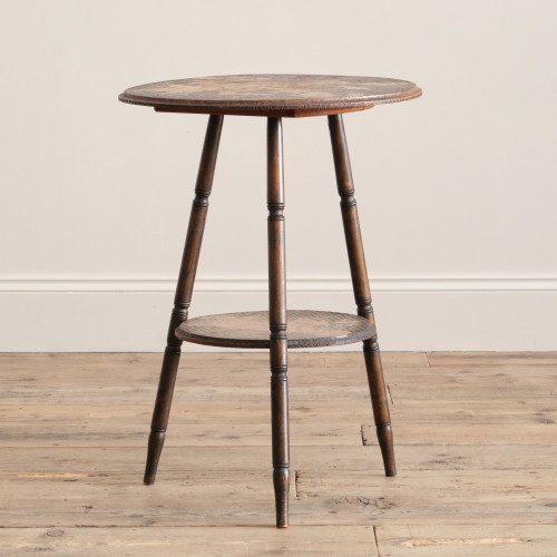 An attractive Moorish side table with carved details throughout. Mother of pearl inlays and brass to the top. Of good scale and In good solid order.