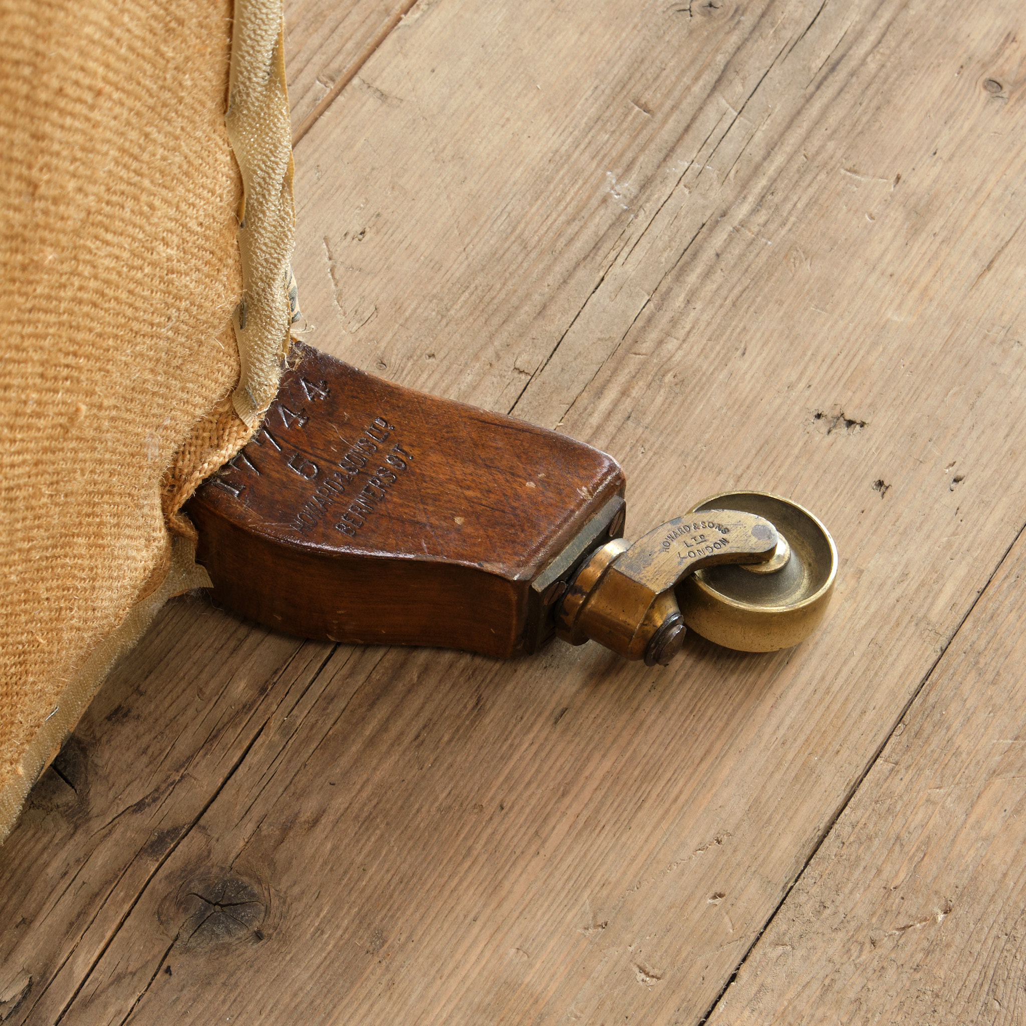 The chair retains much of its original Howard printed lining beneath the attractive floral linen slip cover and is super comfortable which is why we have decided to not restore the chair and sell in 'as found' country house condition.